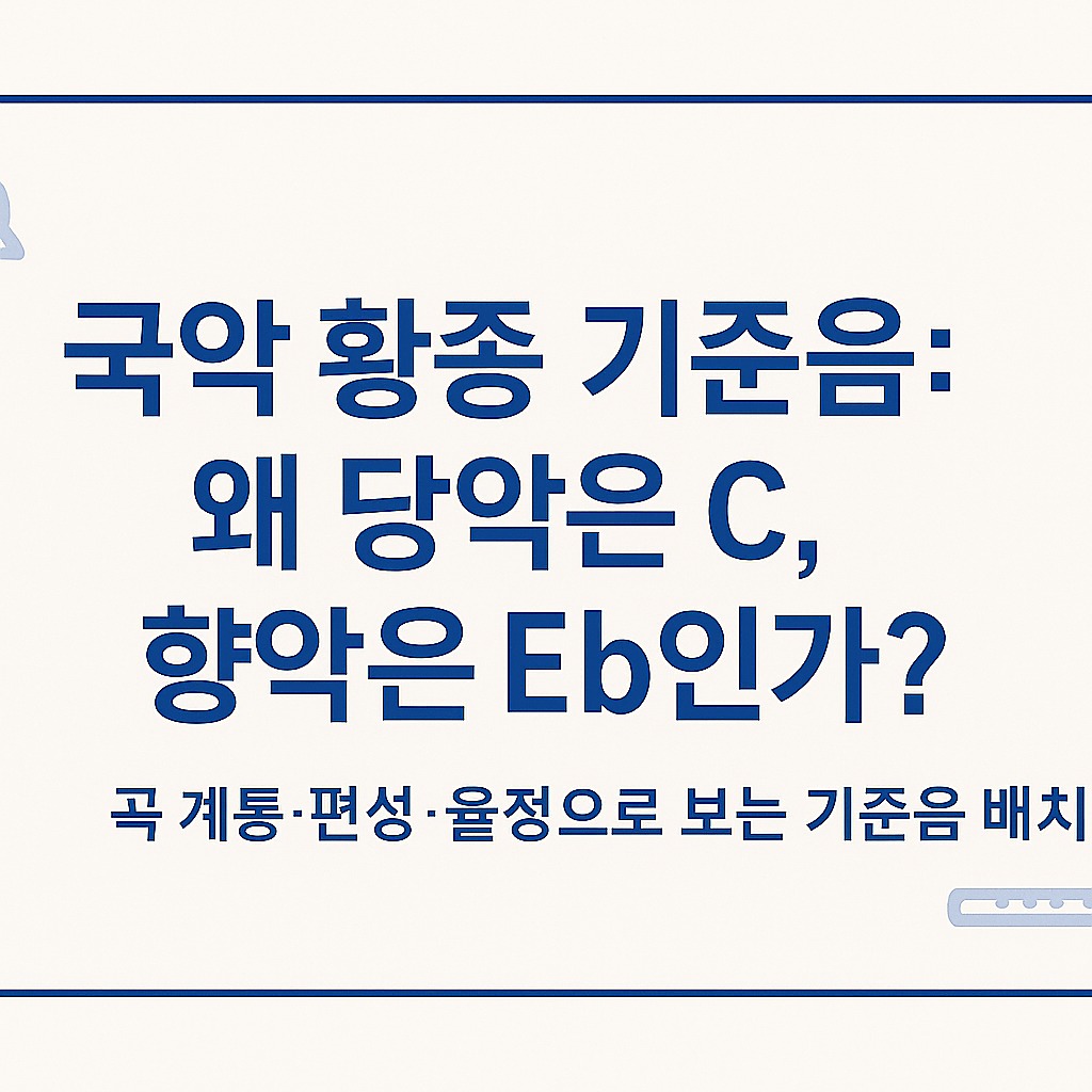 | 향악·현/향관악 중심 | Eb(내림마) | 거문고, 가야금, 향피리, 대금, 단소 | 향관악·현악기의 발성·운지 최적 구간에 맞춰 황종을 배치. |