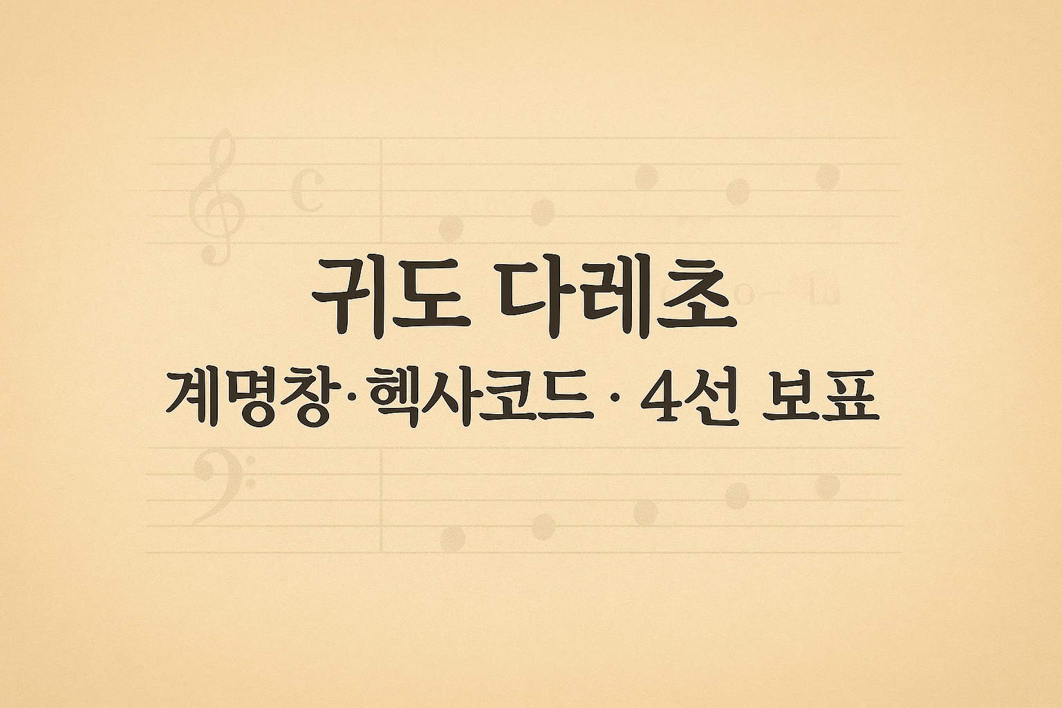 구전·기억 중심의 교수는 지역 편차가 컸다. 귀도는 누구나 같은 위치에서 같은 음을 읽고 같은 규칙으로 노래하게 만드는 표준이 필요하다고 봤다. 해법은 계명창과 보표의 결합이었다.