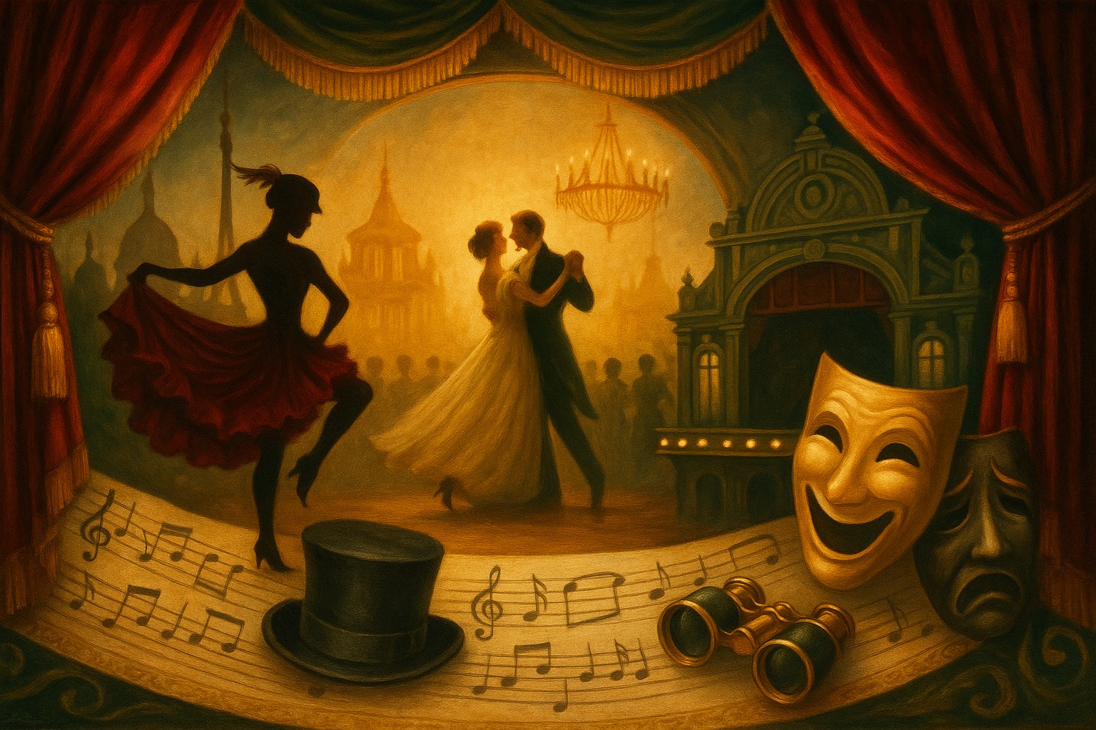 오페라 부프는 1850년대 이후 파리를 중심으로 자리 잡은 풍자적 희극 오페라다. 어원은 이탈리아의 오페라 부파에서 왔지만, 파리에서는 당대 사회·정치·유행을 비틀어 웃음을 터뜨리는 스타일로 굳어졌다. 규모는 비교적 가볍지만, 합창과 앙상블, 춤이 활발하고 대화체(spoken dialogue)를 섞어 리듬감 있게 전개한다. 반면 오페레타는 말 그대로 “작은 오페라”. 대화체·춤·중창을 기본 장치로 삼고, 왈츠·폴카·마주르카 등 무곡성이 짙은 노래들이 서정적 로망스와 만난다. 파리에서 출발한 에너지가 빈으로 건너가면 왈츠의 매혹이 짙어지고, 런던에서는 언어유희와 풍자가 구조적으로 정교해진다. 19세기 중반부터 유럽 전역, 이어 미국까지 빠르게 확산하며 대중극장의 스타 장르가 되었다.
