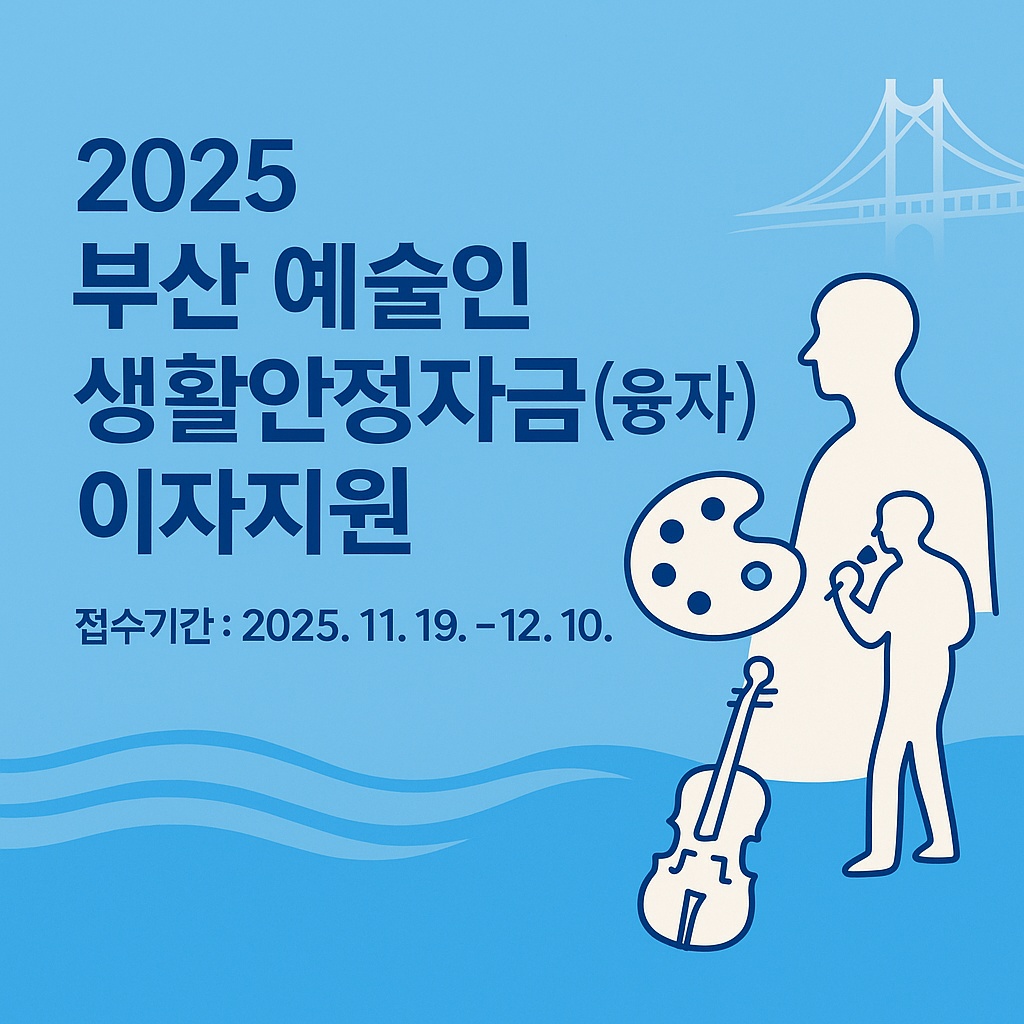 (재)부산문화재단은 지역 예술인의 금융 부담을 줄이고, 창작 활동에 집중할 수 있는 환경을 만들기 위해 2025년 예술인 생활안정자금(융자) 등 이자지원사업(2차)을 추진합니다.