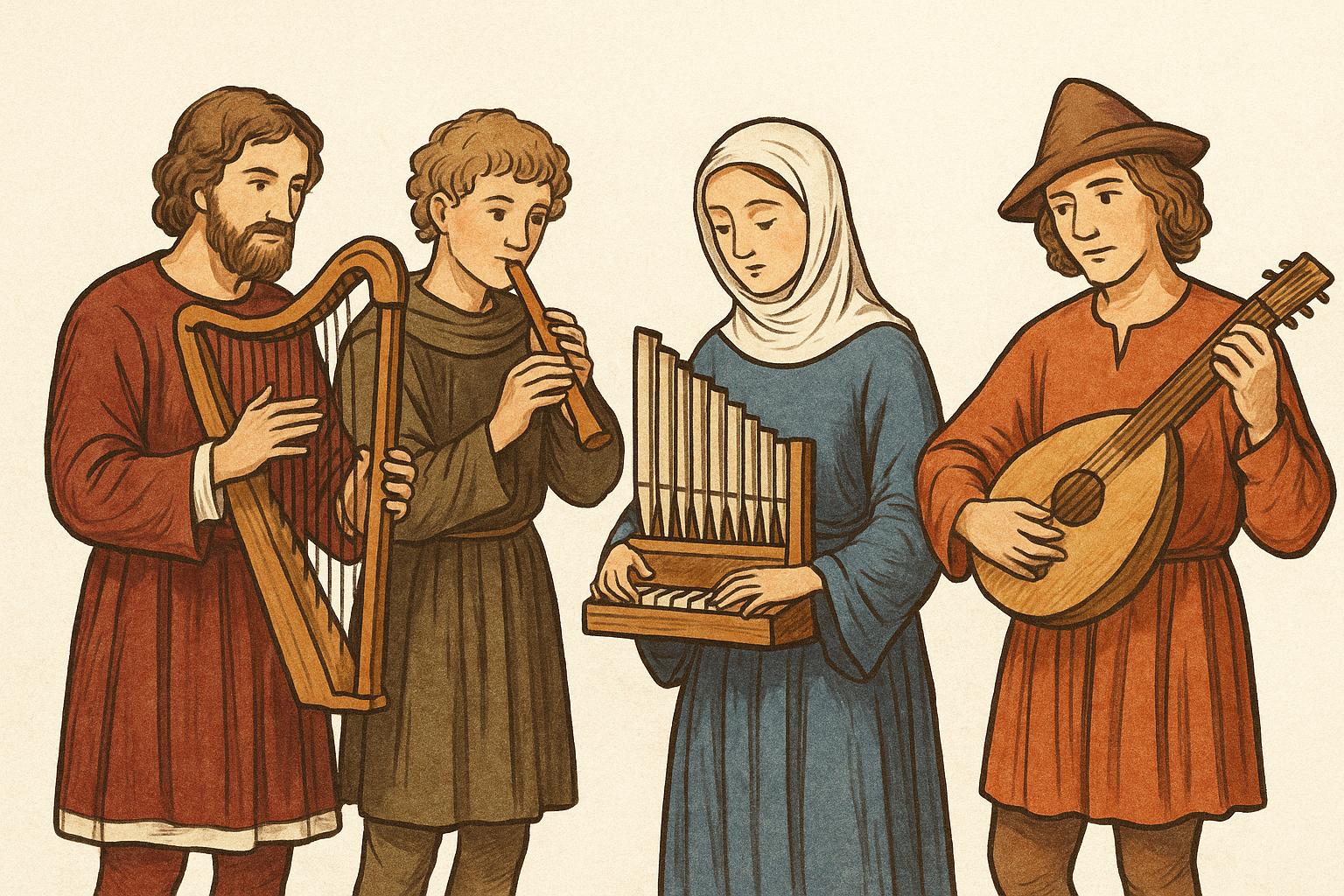 로마 제국은 그리스의 음악 문화를 계승하면서도 실용적으로 변화시켰다. 트럼펫(tuba)과 코르누(cornu)는 군대의 신호용으로 쓰이며, 음악이 예술을 넘어 사회 기능을 담당하는 도구로 발전했다. 하지만 제국의 붕괴 후, 음악은 교회의 품으로 들어간다. 중세 초기에 악기는 ‘세속적 유흥의 상징’으로 여겨졌고, 수도원에서는 오직 목소리만이 신을 찬양하는 순수한 수단으로 허용되었다. 그러나 동시에 세속의 거리와 광장에서는 류트(lute), 하프(harp), 탬버린 등이 연주되며 서민들의 삶을 노래했다. 이처럼 악기는 한편으로 배척되면서, 또 한편으로는 인간의 감정을 품은 현실의 예술로 존재했다.