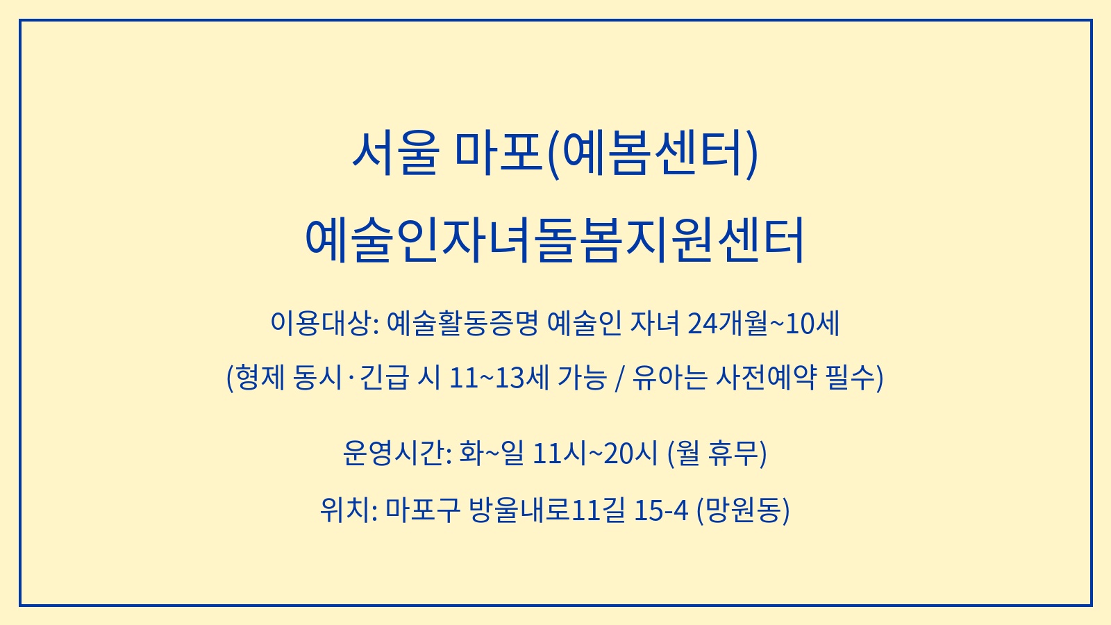 서울 마포(예봄센터) 예술인자녀돌봄지원센터