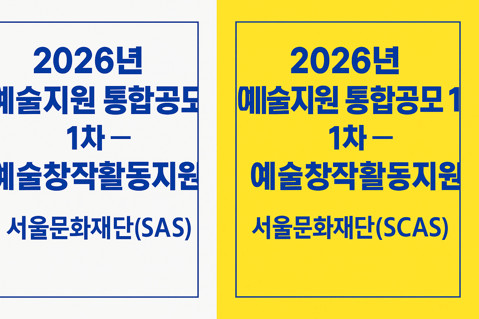 | 2026년 예술지원 통합공모 1차 - 서울문화재단(SCAS) (0) | 2025.09.30 |