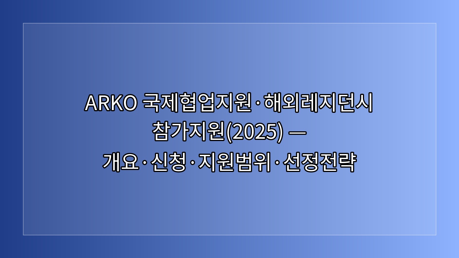 한국문화예술위원회(ARKO)의 국제협업지원·해외레지던시 참가지원은 해외 파트너와의 협업개발 및 제휴 기관 레지던시 참여에 필요한 비용을 보조하는 제도입니다. 공모·결과는 ARKO 공모 안내에서 확인하고, 접수는 NCAS(국가문화예술지원시스템) 등 공고문에 지정된 플랫폼을 사용합니다. 사업 개요(영문)는 ARKO International Exchange에서 볼 수 있습니다.